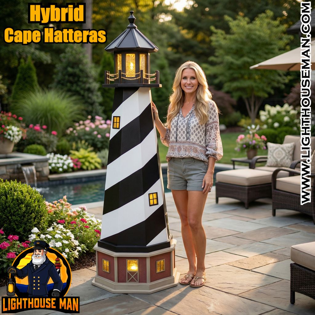Are you searching for a Cape Hatteras Yard Lighthouse that combines classic style with unbeatable durability? At Lighthouse Man, we proudly offer our Hybrid Lighthouses – where traditional charm meets cutting-edge craftsmanship.